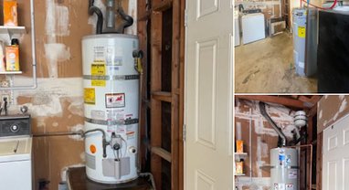Before during and after simple water heater change-out becomes problematic when the house is built in 1972 and there’s water damage if you know what…